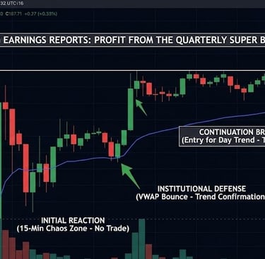 Phase 3: The Intraday Execution (The During Phase) We never trade the initial 5 minutes of an earnings reaction. It is a "no-man's land" of wide spreads and algorithm-driven fake-outs. We wait for the Institutional Footprint to establish itself.